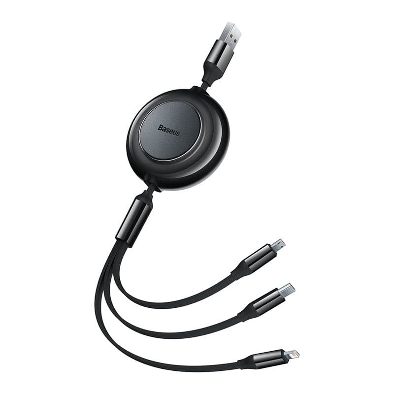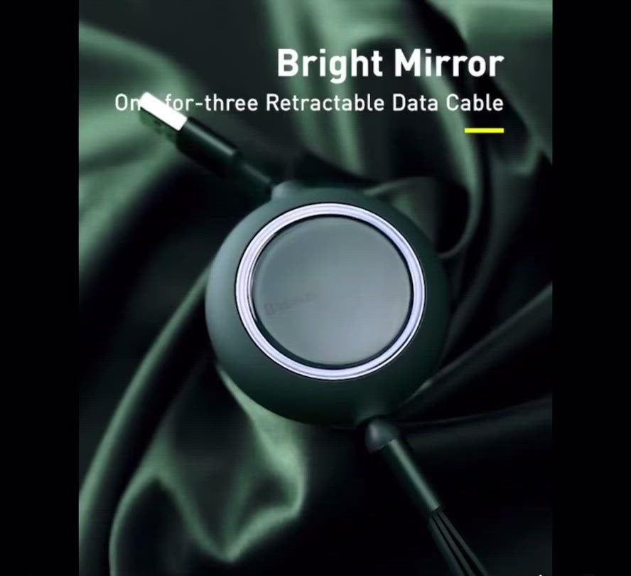 Baseus Bright Mirror II Series Retractable 3 in 1 هو كابل متعدد الاستخدامات يحتوي على ثلاثة موصلات مختلفة: مايكرو ، تايب-سي ، و ايفون التي يمكنها شحن هاتفك الآيفون ، الآيباد ، سامسونج ، هواوي ، شاومي ، أوبو والمزيد.