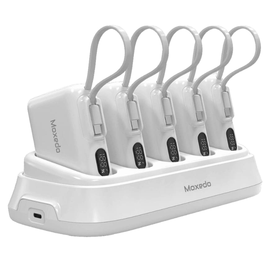موكسيدو كومبو باور بانك هي مجموعة تحتوي على خمسة باور بانكات بقوة 10000 ميلي امبير كل منها مزود بكابل تايب-سي مدمج لشحن سريع وسهل. ومع قاعدة شحن مريحة للحفاظ على كل شيء مرتبًا ومشحونًا لن تنفد الطاقة منك مرة أخرى. كما انها مثالية للاستخدام في المنزل أو المكتب أو في المجالس حيث تضمن مجموعة موكسيدو ان تبقى أجهزتك مشحونة وجاهزة للاستخدام في أي وقت تحتاج إليها.