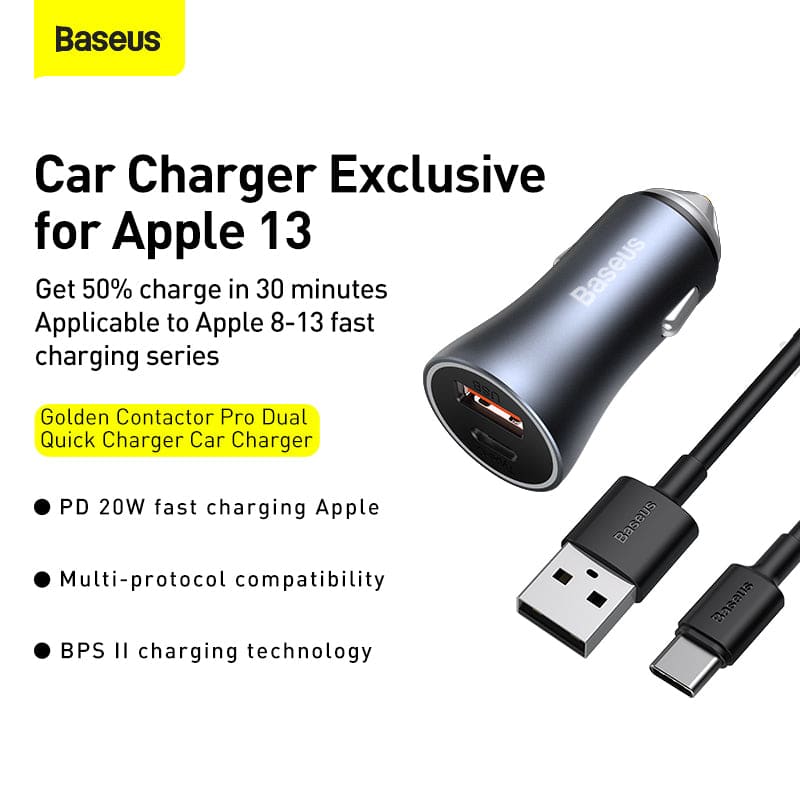 • اسم المنتج: بيزوس قولدن كونتراكتور برو - شاحن سيارة يو اس بي و تايب سي 40 واط مع كيبل ايفون تايب سي 1 متر