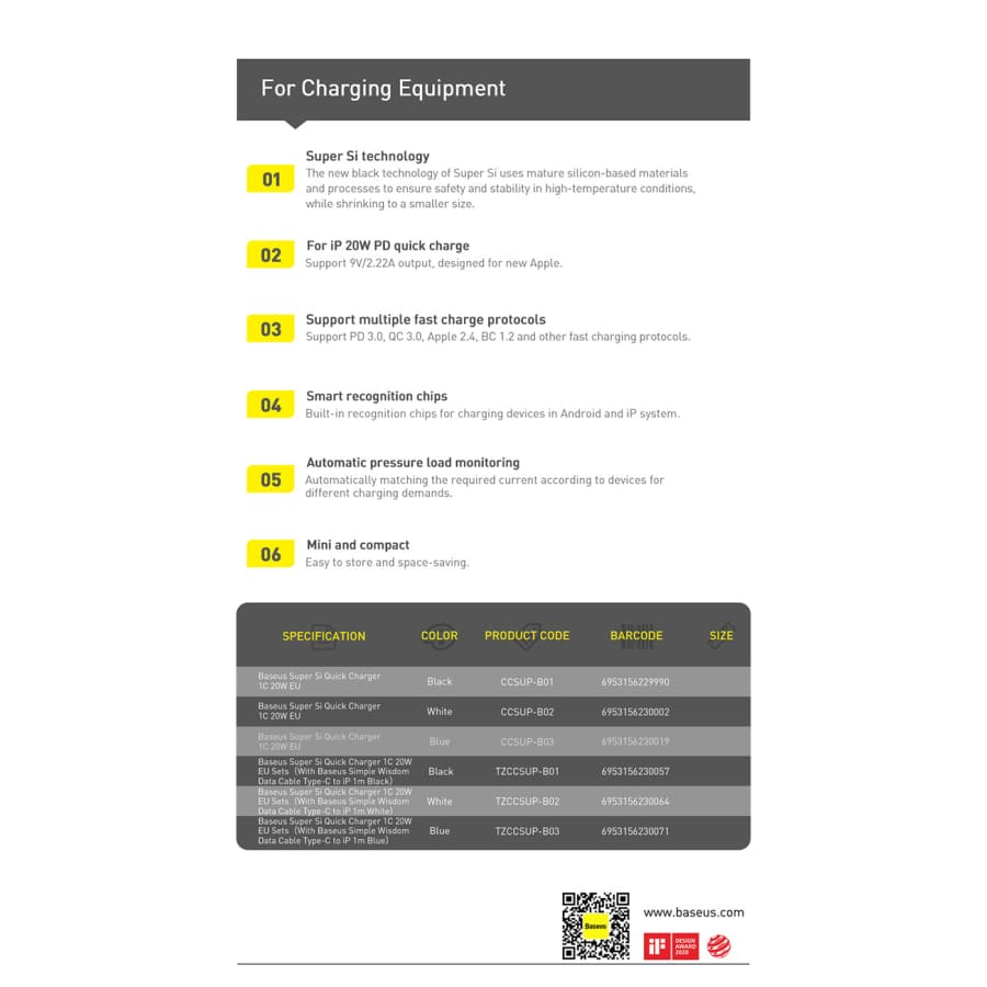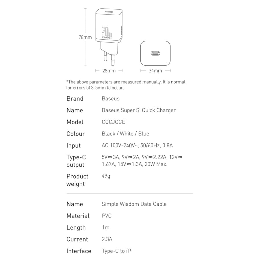 Gadget Store -BASEUS Super Si Type-C 20W Plug With Cable