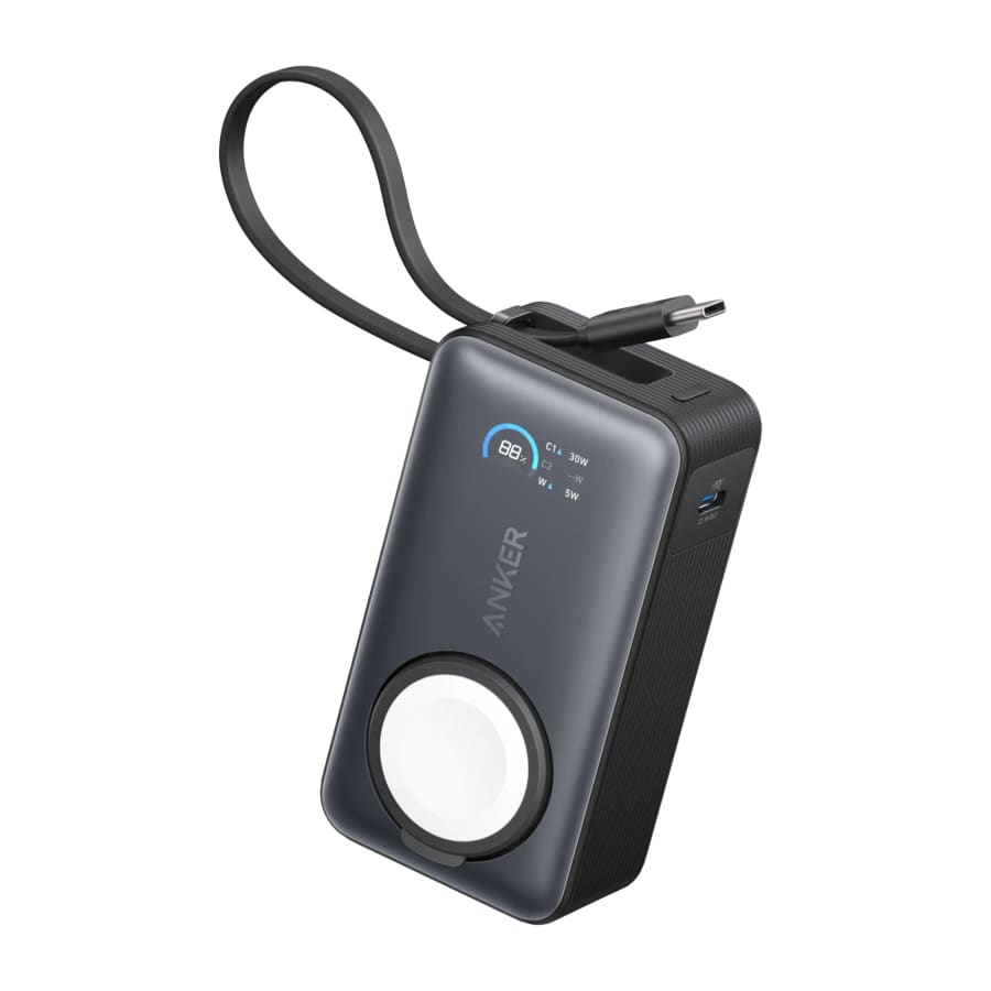 يقدم بنك الطاقة أنكر بسعة 10,000 مللي أمبير شحنًا سريعًا بقوة 35 واط عبر تايب-سي، ويتميز بشاحن مدمج لساعة آبل مع شاشة لعرض حالة البطارية. تصميمه المدمج يجعله مثاليًا للسفر والاستخدام اليومي.