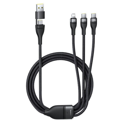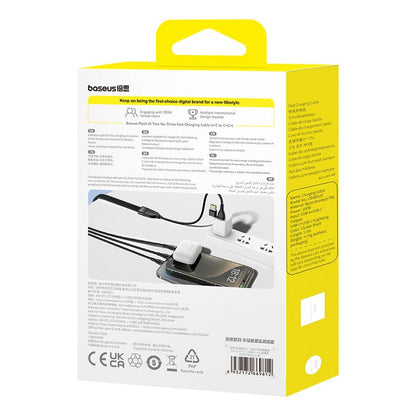 بيزوس فلاش سيريز 3 كيبل 2 الى 3 شحن سريع USB + تايب-سي الى ايفون+ 2 تايب سي 100 واط 1.5 متر- أسود